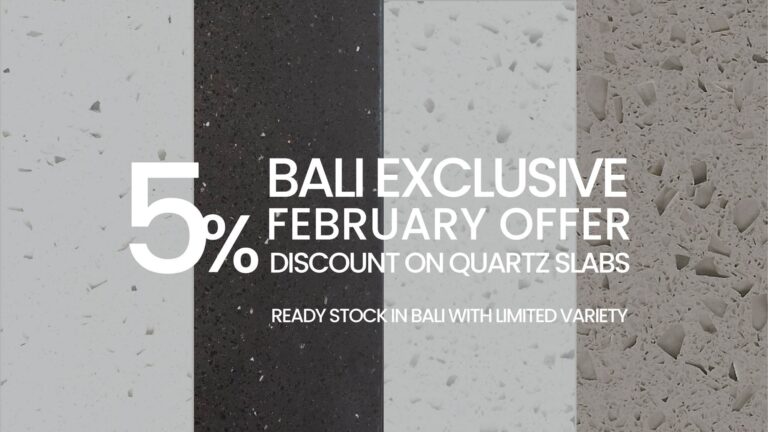 As we step into the month of love, we are thrilled to unveil our exclusive Bali offer for February 2024, an irresistible 5% discount on our exquisite quartz slabs! No preordering required, ready stock in Bali with limited variety available…